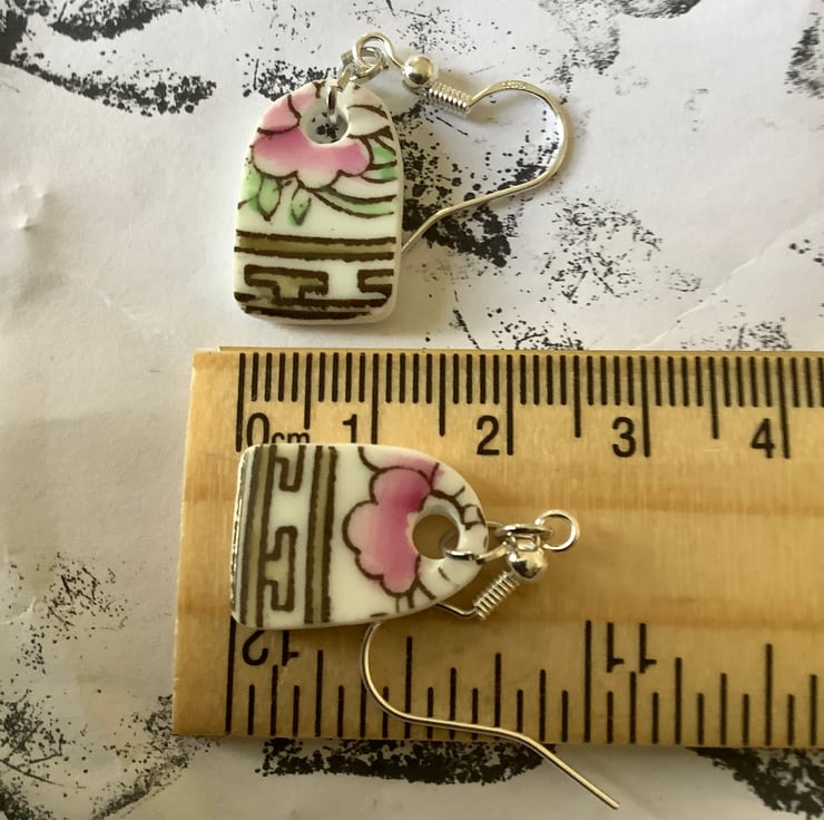 These earrings are made from the rim, I’ve sanded and sealed the edges. The colours and delicate pattern creates a truly unique pair of earrings.