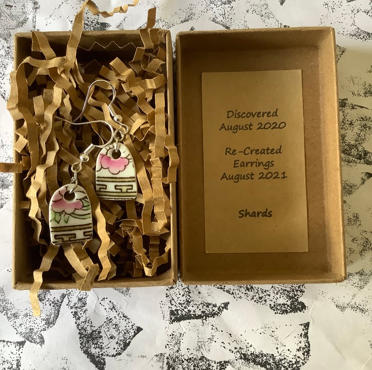Hand crafted Jewellery and framed artworks using pre loved and discarded ceramics. Ceramic material will show signs of wear and damage. Entire process is a creative experience from discovery to final picture, nothing planned or preconceived. All materials personally collected from river banks, charity shops, roadside, woods, recycle centres, beaches, wherever dropped, dumped or donated ceramics are found, cleaned and shaped into new stories. Each titled piece comes with bio of where the ceramic came from, known history, original information and when the artwork was created. Some ceramics collected are used as found, while others are cut randomly which will shape the final picture. Every piece is individual, nothing replicated, however, due to repetitive patterns in ceramics there will be some similarity but only through the ceramic material not in the final piece.