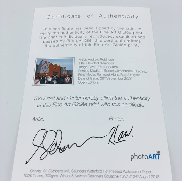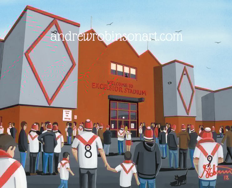 Titled ‘Devoted Diamonds’ this is a unique Airdrieonians F.C print direct from myself the artist. My artworks are a celebration of the match day experience and of stadium architecture.