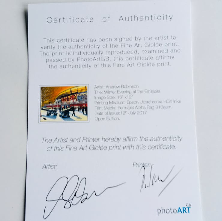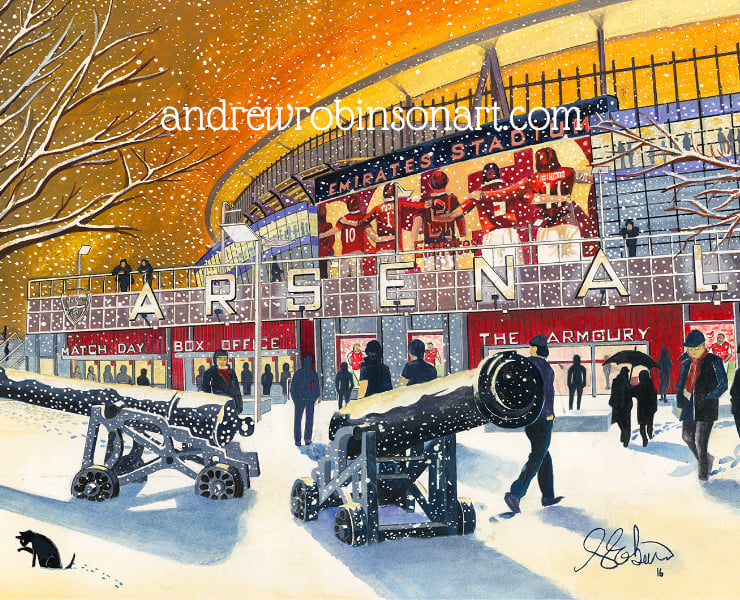 Titled ‘Winter Evening at the Emirates’ this is a unique Arsenal F.C print direct from myself the artist. My artworks are a celebration of the match day experience and of stadium architecture.