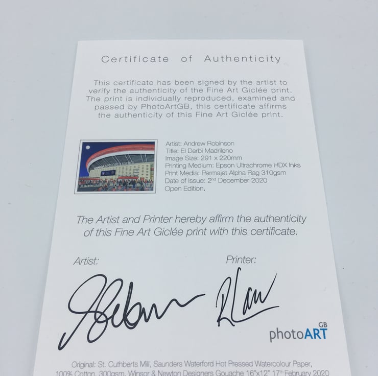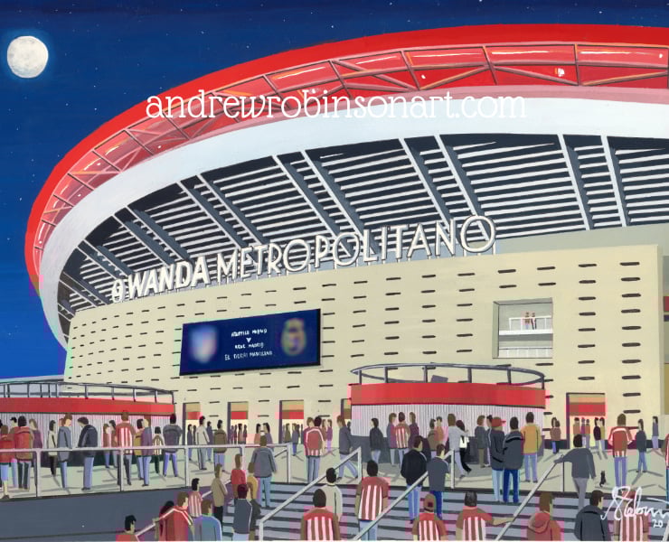 Titled ‘El Derbi Madrileno’ this is a unique Atletico Madrid print direct from myself the artist. My artworks are a celebration of the match day experience and of stadium architecture.