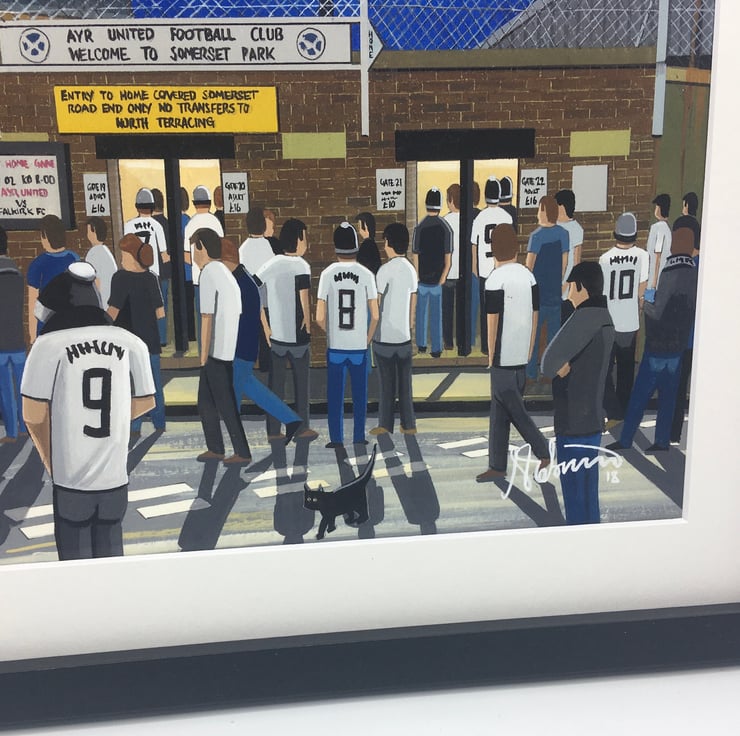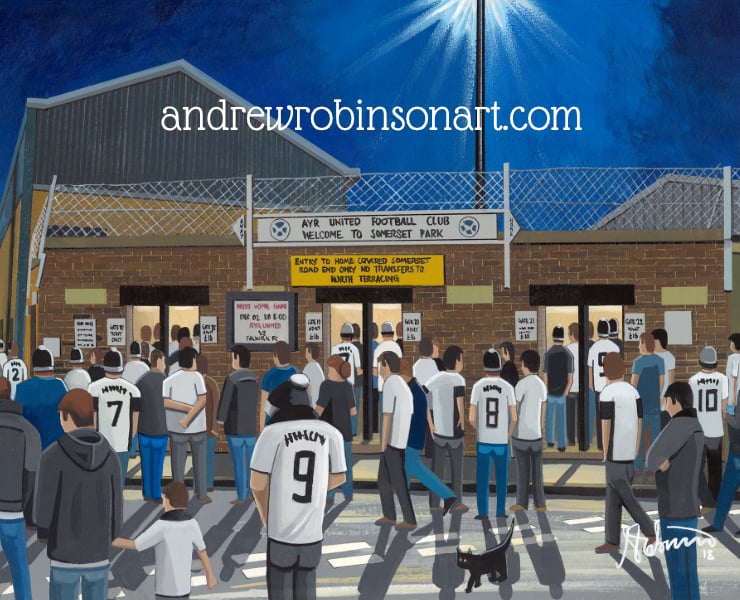 Titled ‘The Honest Men Huddle’ this is a unique Ayr Utd F.C print direct from myself the artist. My artworks are a celebration of the match day experience and of stadium architecture.