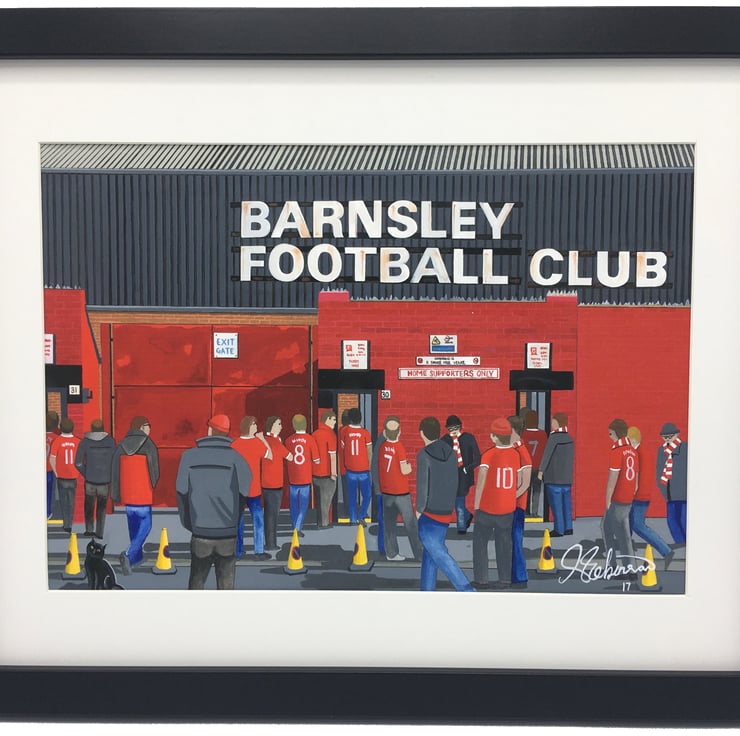 Titled ‘Oakwell Onlookers’ this is a unique Barnsley F.C print direct from myself the artist. My artworks are a celebration of the match day experience and of stadium architecture.