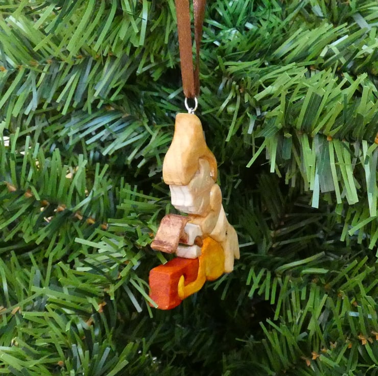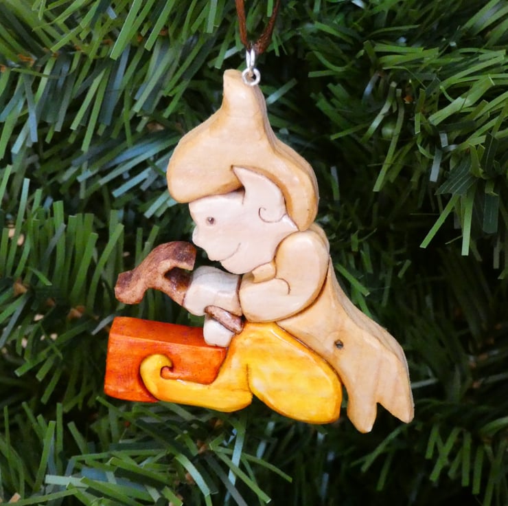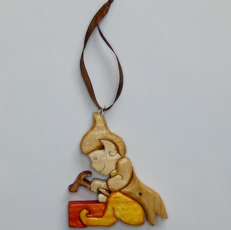 This unusual wooden Elf Christmas Bauble, has been upcycled from reclaimed wood. This fun Christmas ornament will make a lovely addition to your Christmas tree. This decoration will make a perfect gift for numerous occasions such as a best friend gift, a housewarming gift or a Christmas present.