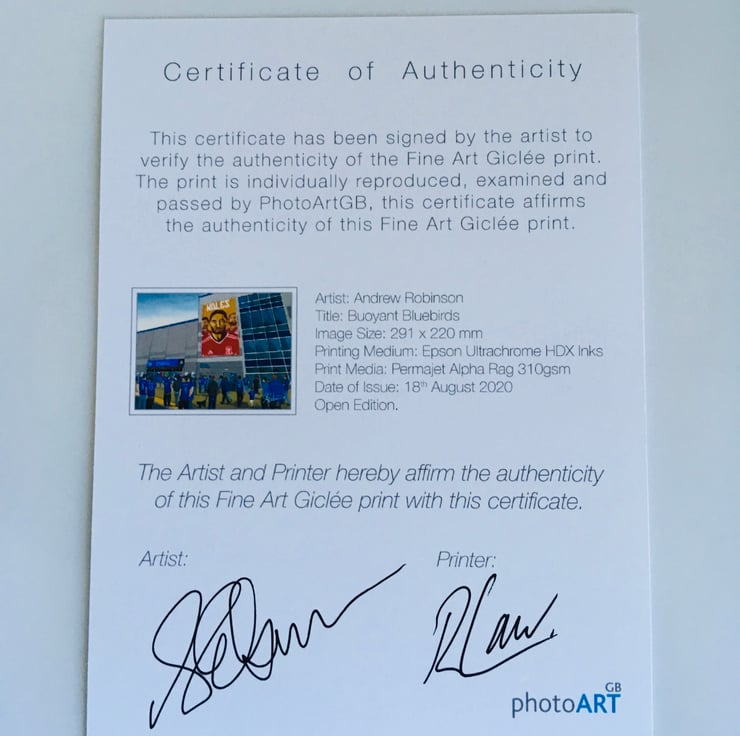Titled ‘Bouyant Bluebirds’ this is a unique Cardiff City F.C print direct from myself the artist. My artworks are a celebration of the match day experience and of stadium architecture.