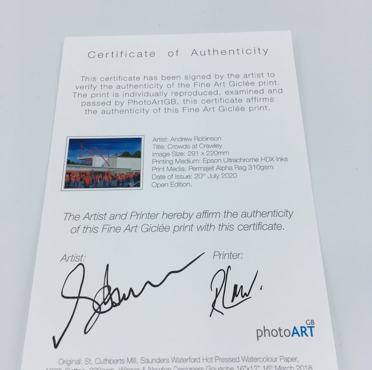 Titled ‘Crowds at Crawley’ this is a unique Crawley Town F.C print direct from myself the artist. My artworks are a celebration of the match day experience and of stadium architecture.