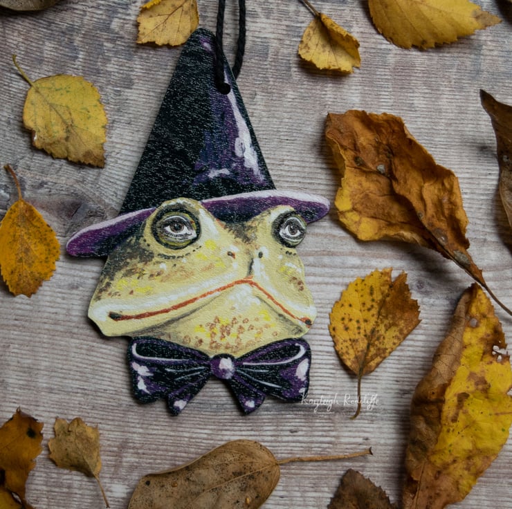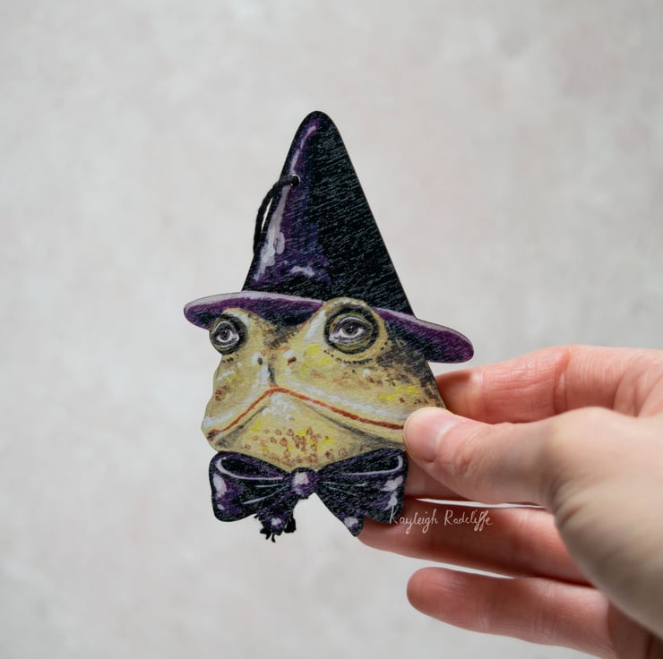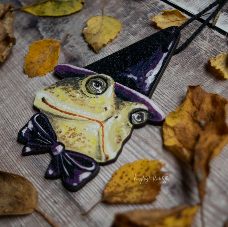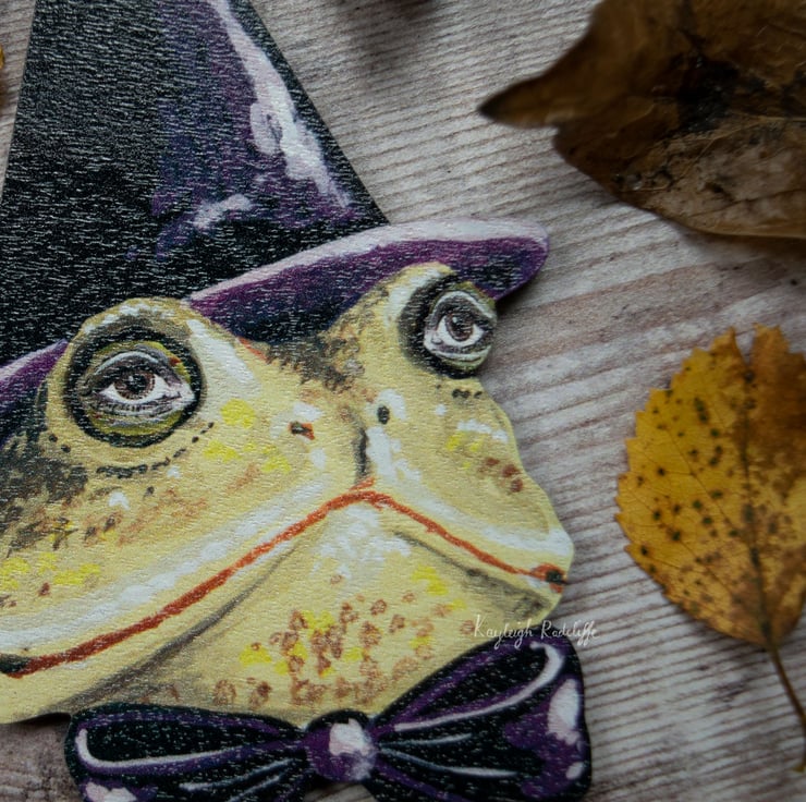 A laser cut wooden decoration of a toad I named Tom. He'd be perfect for your Halloween decor!