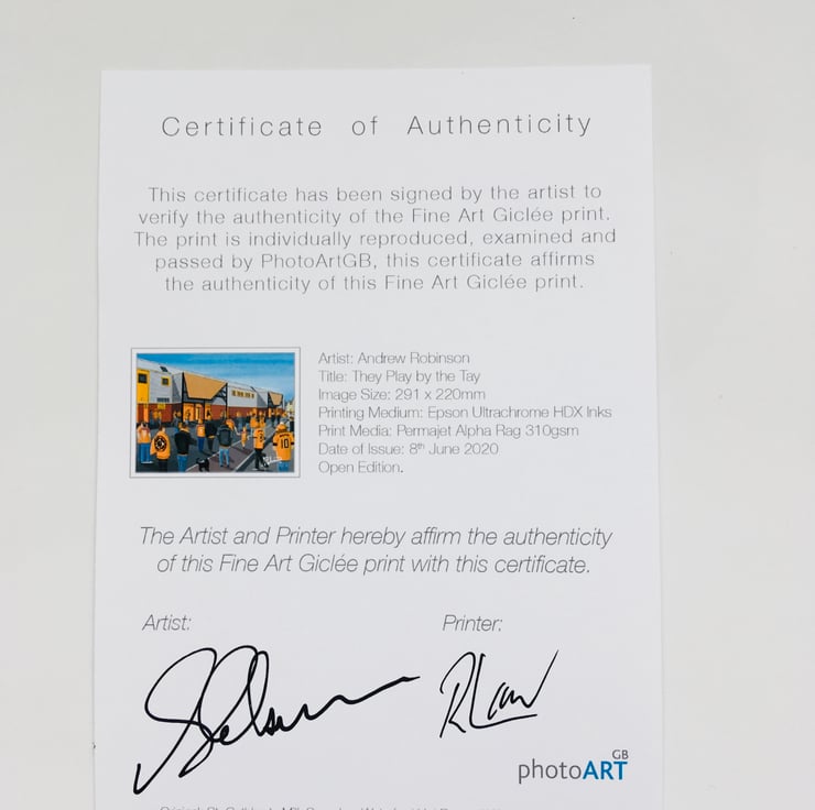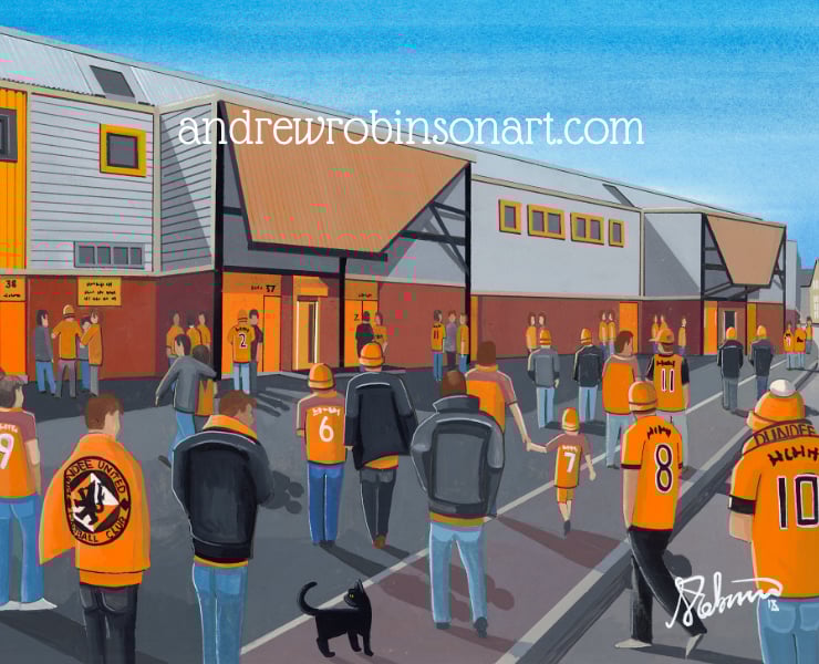 Titled ‘They Play by the Tay.’ this is a unique Dundee Utd F.C print direct from myself the artist. My artworks are a celebration of the match day experience and of stadium architecture.