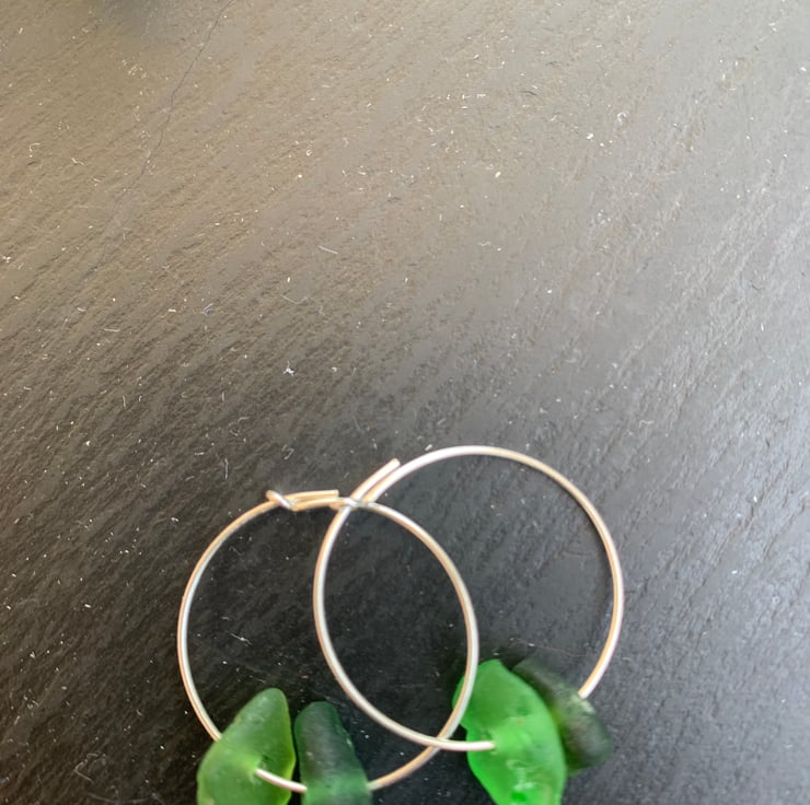 These Sterling silver hoops for pieced ears have seaglass "beads" threaded onto them to make pieces of unique jewellery.