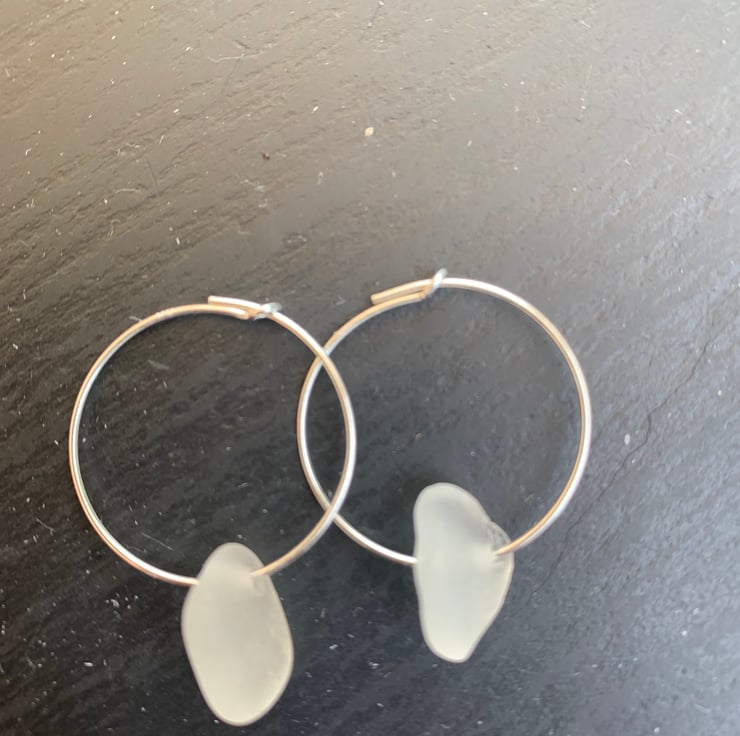 These Sterling silver hoops show off the seaglass pieces beautifully. An any occasion piece of jewellery.
