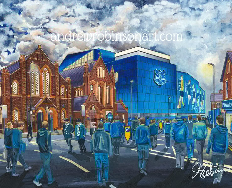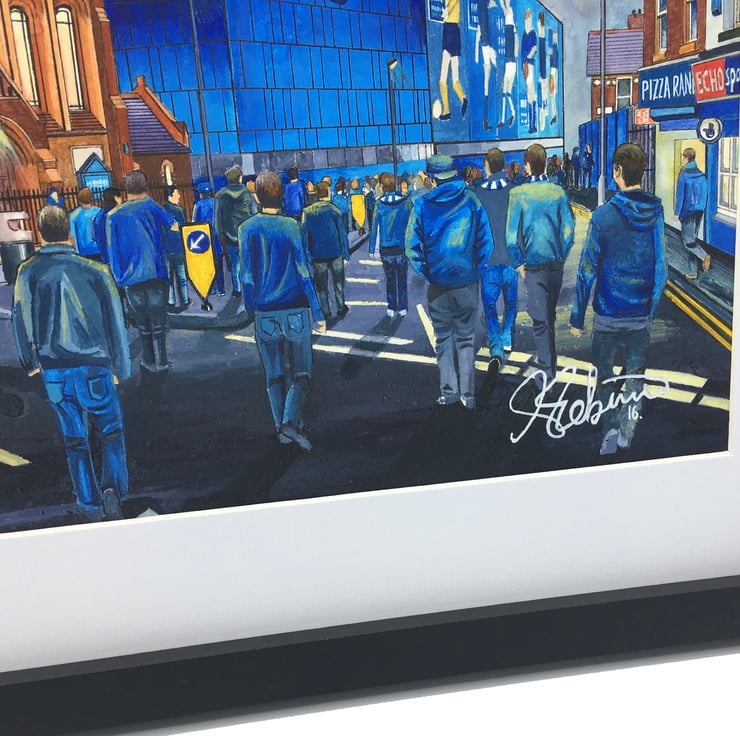 Titled ‘Gathering at Goodison’ this is a unique Everton F.C print direct from myself the artist. My artworks are a celebration of the match day experience and of stadium architecture.