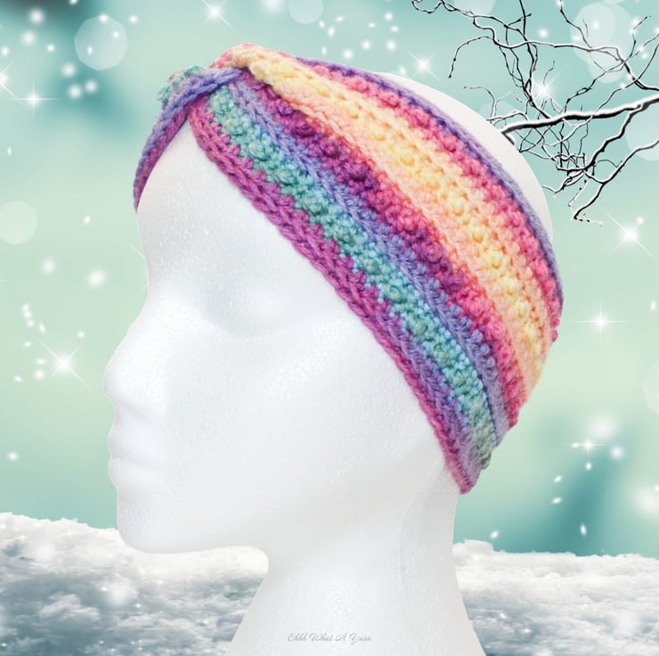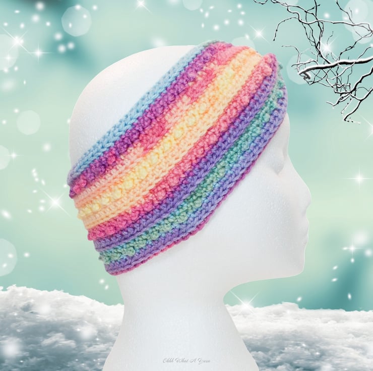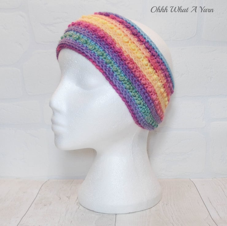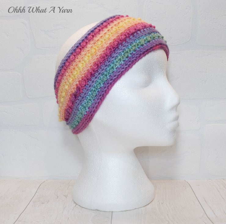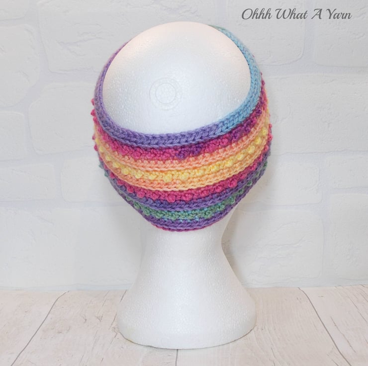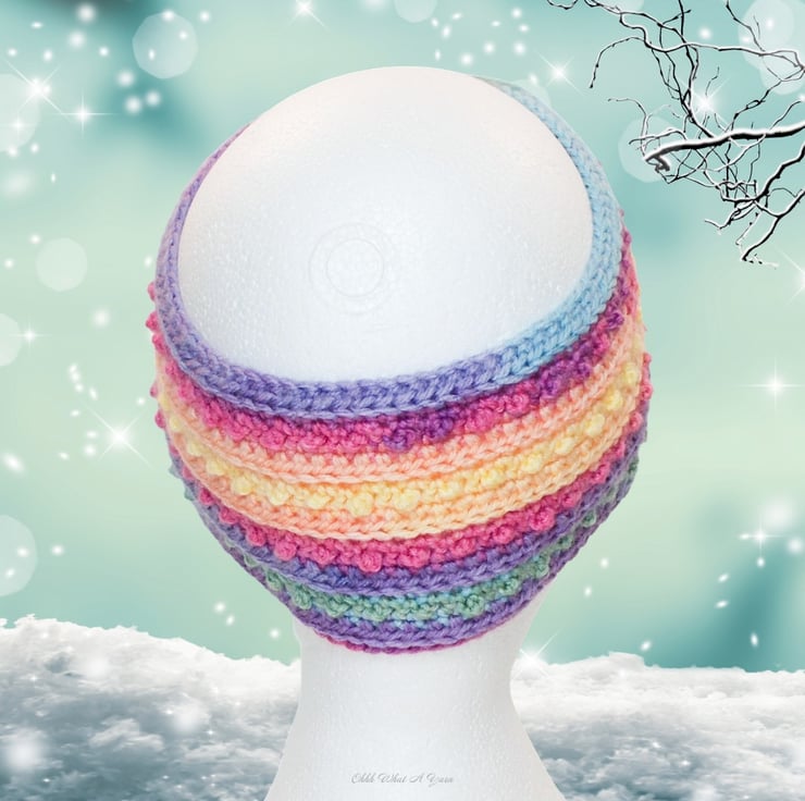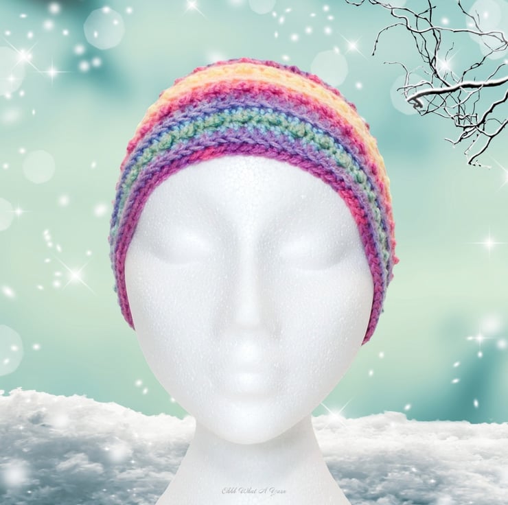 This pretty pastel rainbow one size ladies rainbow ear warmer/headband has been crocheted using a gorgeous 100% premium acrylic yarn.
