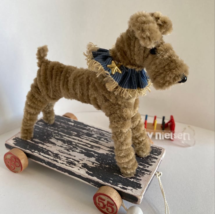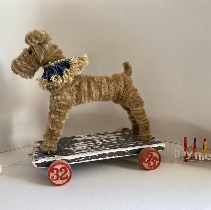New one of a kind dogs from Bay Nielsen. These guys stand approximately 11cm tall and have individually hand painted trolleys which have decorative, vintage wooden ‘lotto’ wheels. Small pieces of art to love and enjoy.