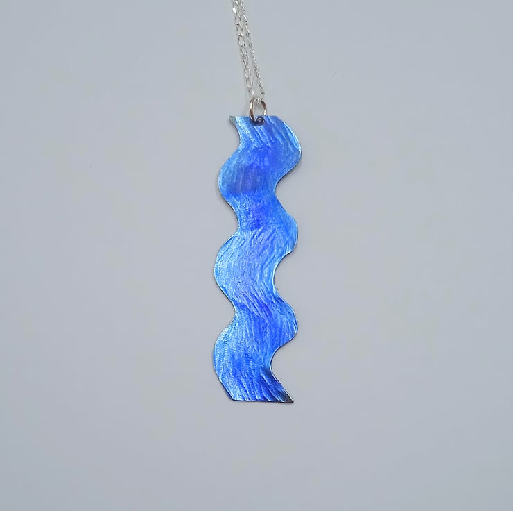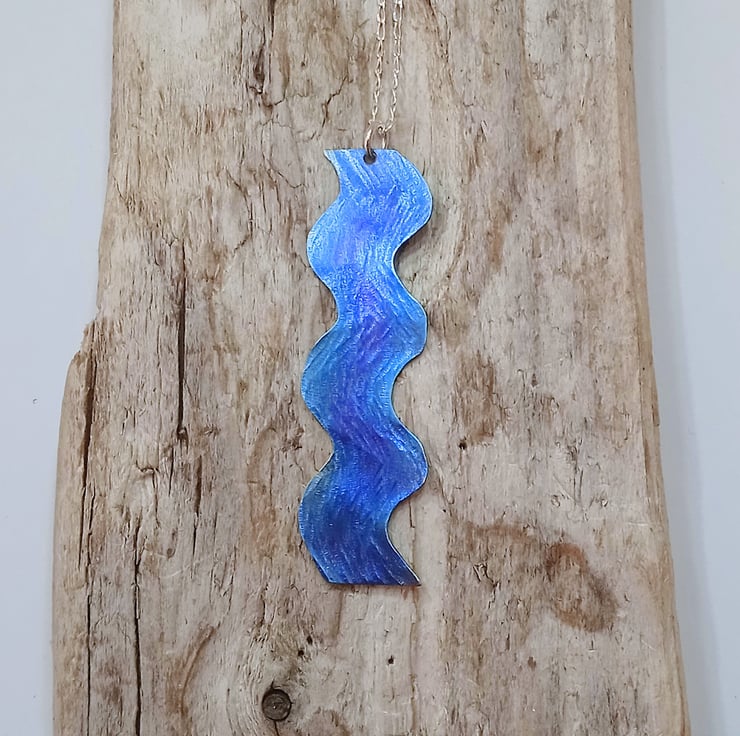 I have made this beautiful pendant by hand sawing the shape from titanium sheet. I've given the surface an attractive hammered finish to create texture and polished finish before colouring.