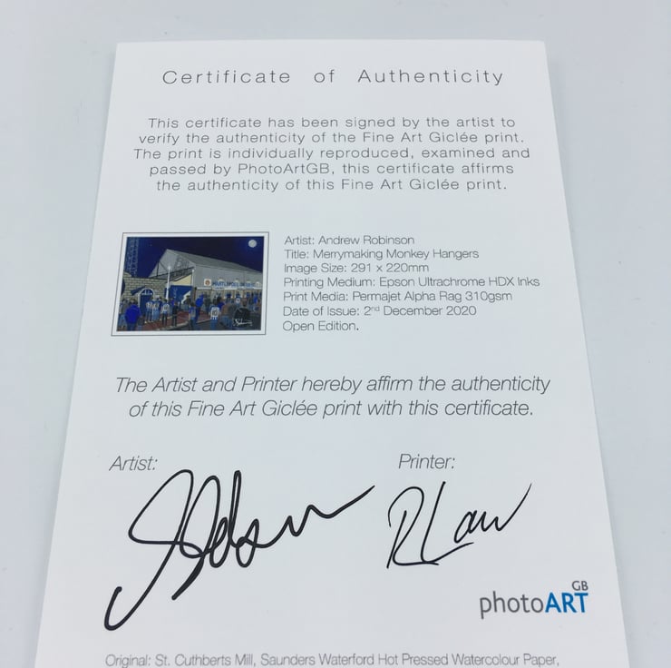 Titled ‘Merrymaking Monkey Hangers’ this is a unique Hartlepool Utd F.C print direct from myself the artist. My artworks are a celebration of the match day experience and of stadium architecture.