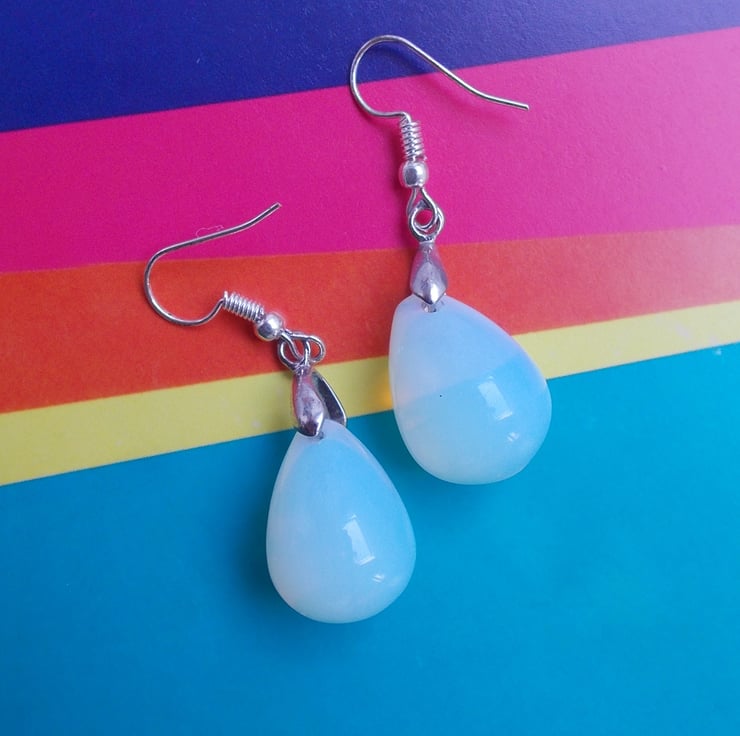 These beautiful opals are a tear drop shape and hang from sterling silver nickel free hooks. Always stylish and go with just about everything. Free UK postage.