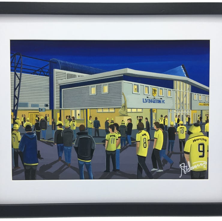 Titled ‘Almondvale Arrival’ this is a unique Livingston F.C print direct from myself the artist. My artworks are a celebration of the match day experience and of stadium architecture.