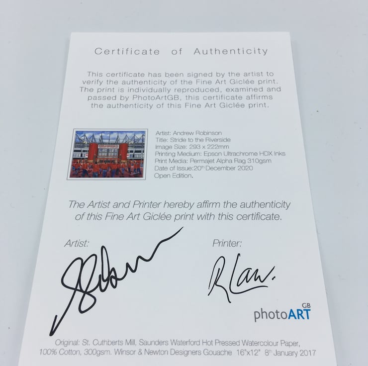 Titled ‘Stride to the Riverside’ this is a unique Middlesbrough F.C print direct from myself the artist. My artworks are a celebration of the match day experience and of stadium architecture.