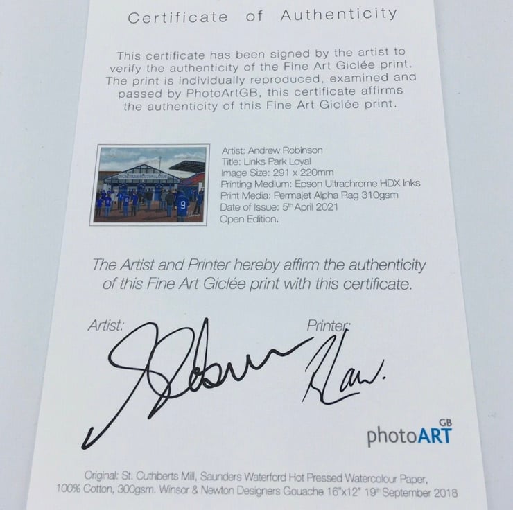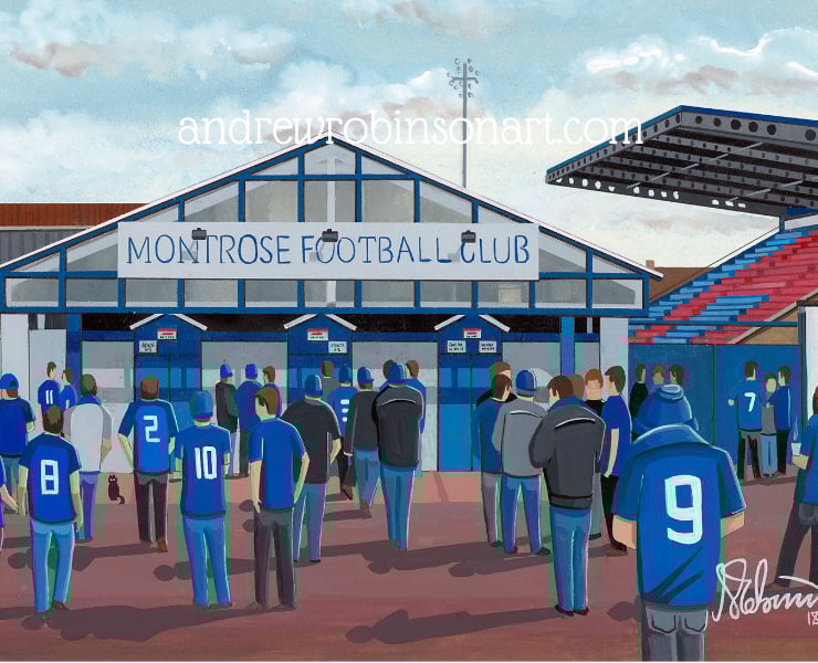 Titled ‘Links Park Loyal’ this is a unique Montrose F.C print direct from myself the artist. My artworks are a celebration of the match day experience and of stadium architecture.