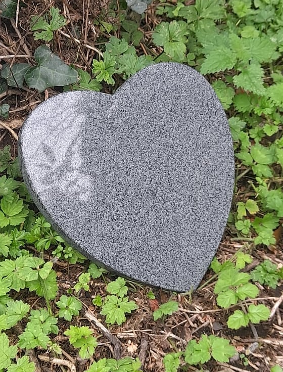 Heart Shaped Solid Black Granite Engraved Personalised Granite Memorial Grave Plaque (Price includes personalisation)