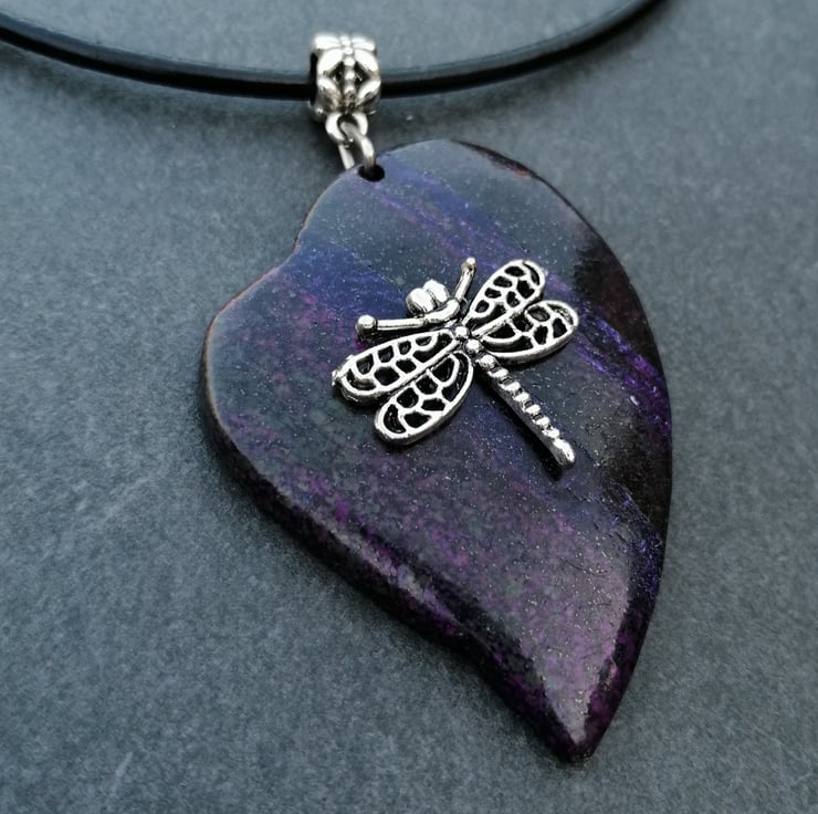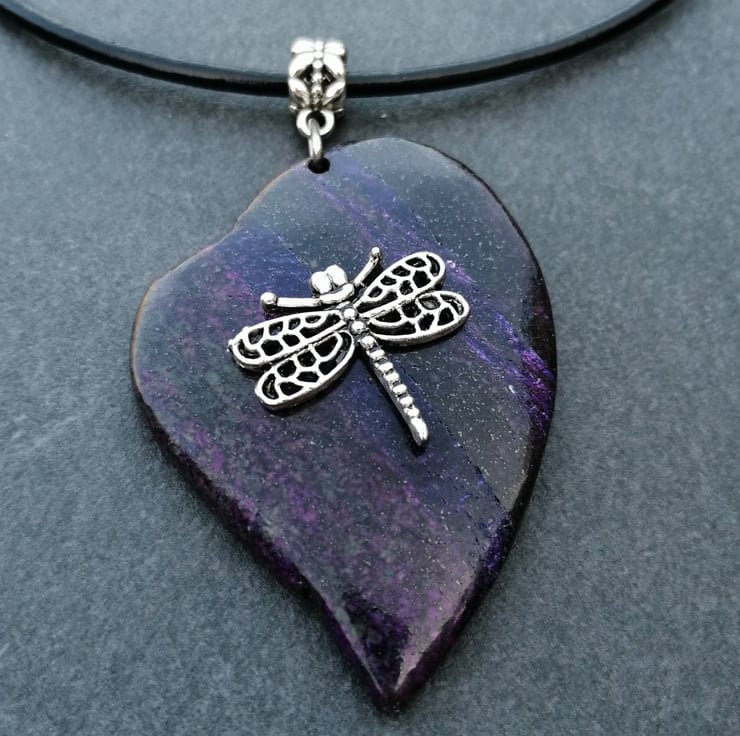 This lovely heart shaped necklace looks great with the silver plated dragonfly charm. Please leave me a message with your choice of necklace. I can offer black leather or silver plated chain. In any length requested