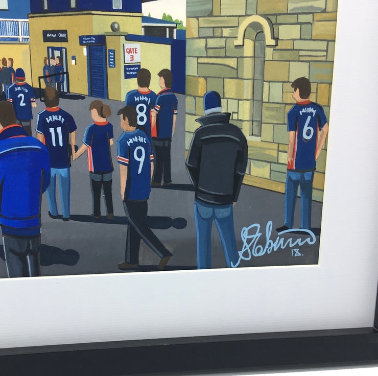 Titled ‘Supporting the Staggies’ this is a unique Ross County F.C print direct from myself the artist. My artworks are a celebration of the match day experience and of stadium architecture.