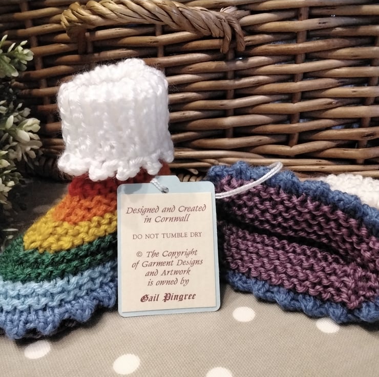 Baby knitwear is designed and hand crafted by Demelza Designs in Cornwall meeting UK baby safety standards, Only branded premuim acylic, acrylic/natural fibre blends or pure natural fibre yarns are used in baby knitwear which conforms to BS984/76 standards.