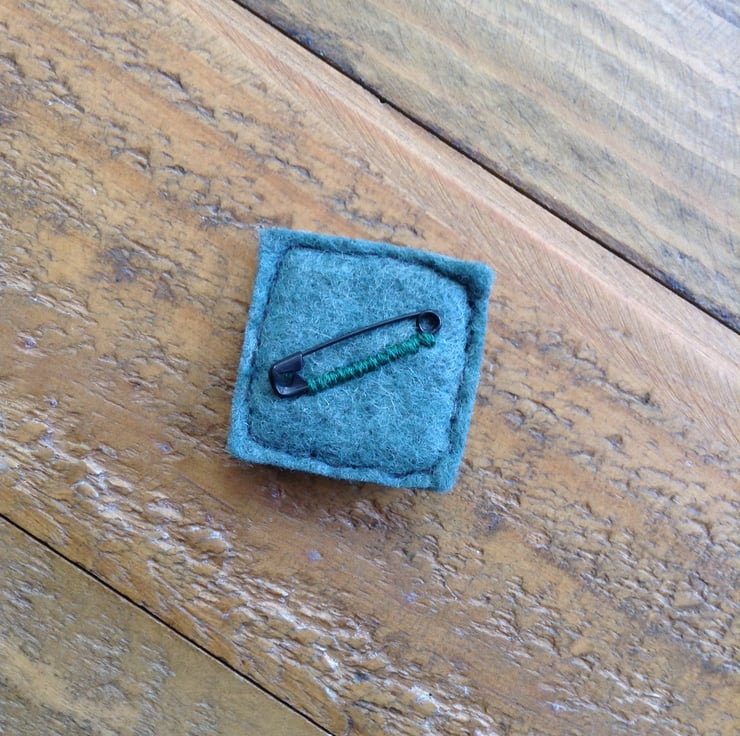 A square cabochon is sandwiched in the middle of the felt back and front to give the brooch shape.