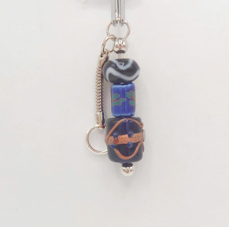 Blue and Black Lampwork Bead Key Ring, Key Ring, Gift for Her, Gift for Teacher, Beaded Key Ring, Gift for Her, Thank you Gift, End of Term Gift, Gift for Teachers, Secret Santa Gift, Stocking Filler