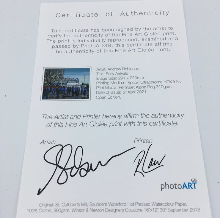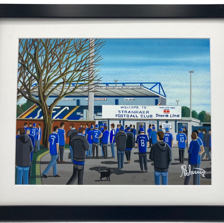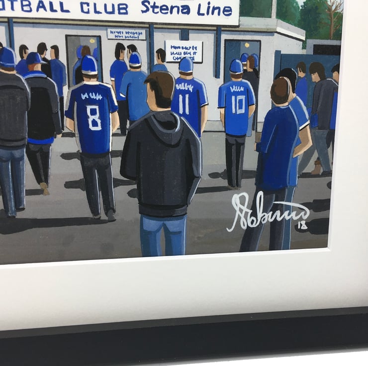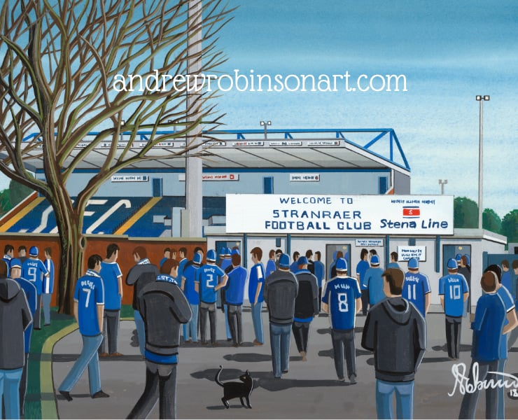 Titled ‘Early Arrivals ’ this is a unique Stranraer F.C print direct from myself the artist. My artworks are a celebration of the match day experience and of stadium architecture.