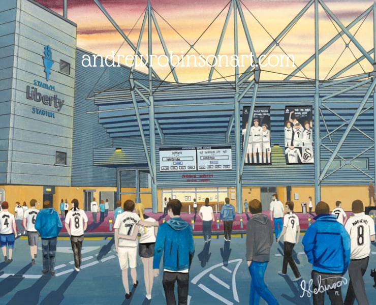 Titled ‘Support for the Swans’ this is a unique Swansea City F.C print direct from myself the artist. My artworks are a celebration of the match day experience and of stadium architecture.