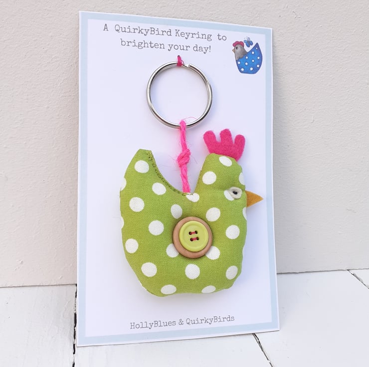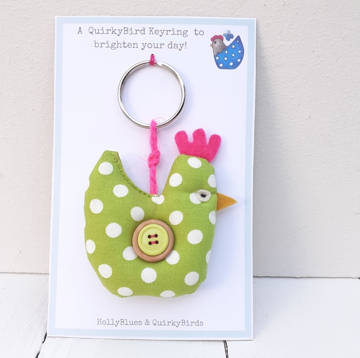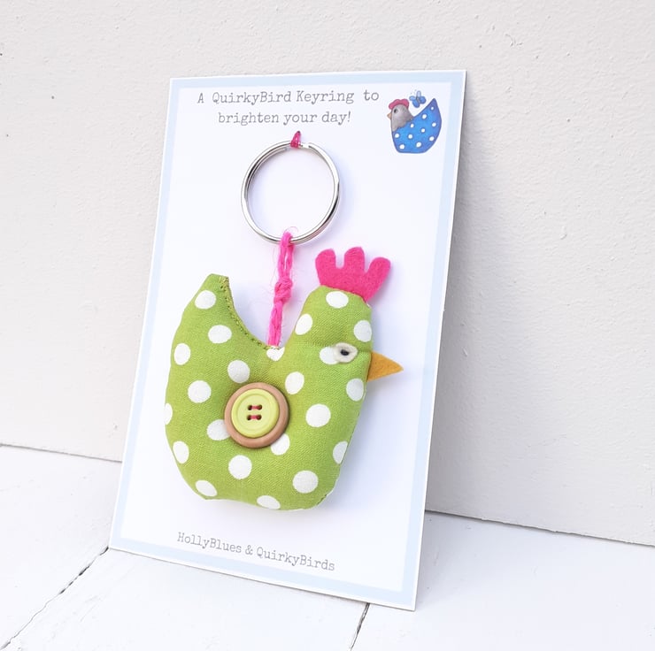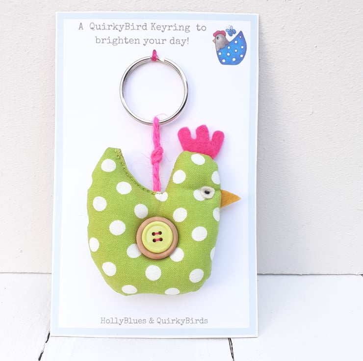 This keyring comes on a presentation card which reads 'A QuirkyBird Keyring to Brighten your day'