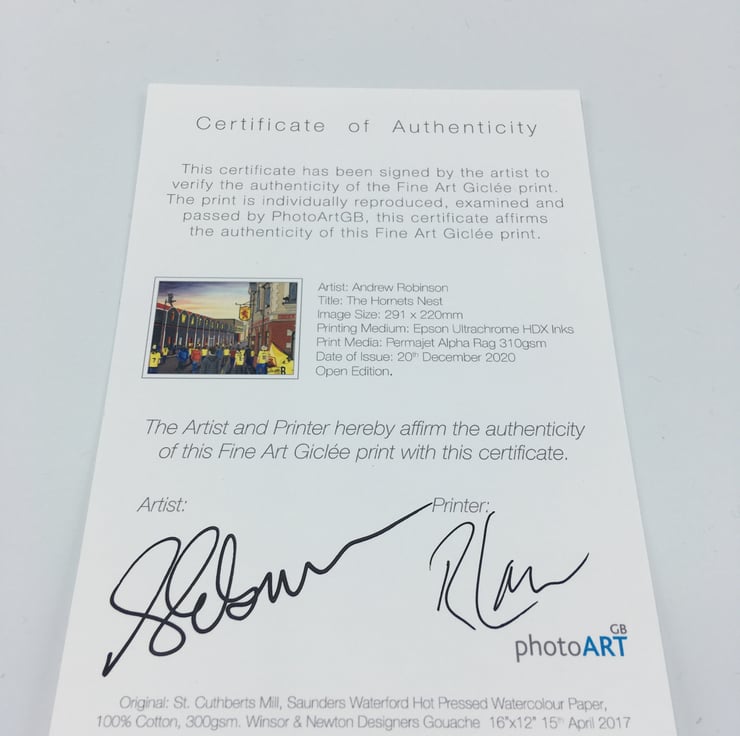 Titled ‘The Hornets Nest’ this is a unique Watford F.C print direct from myself the artist. My artworks are a celebration of the match day experience and of stadium architecture.
