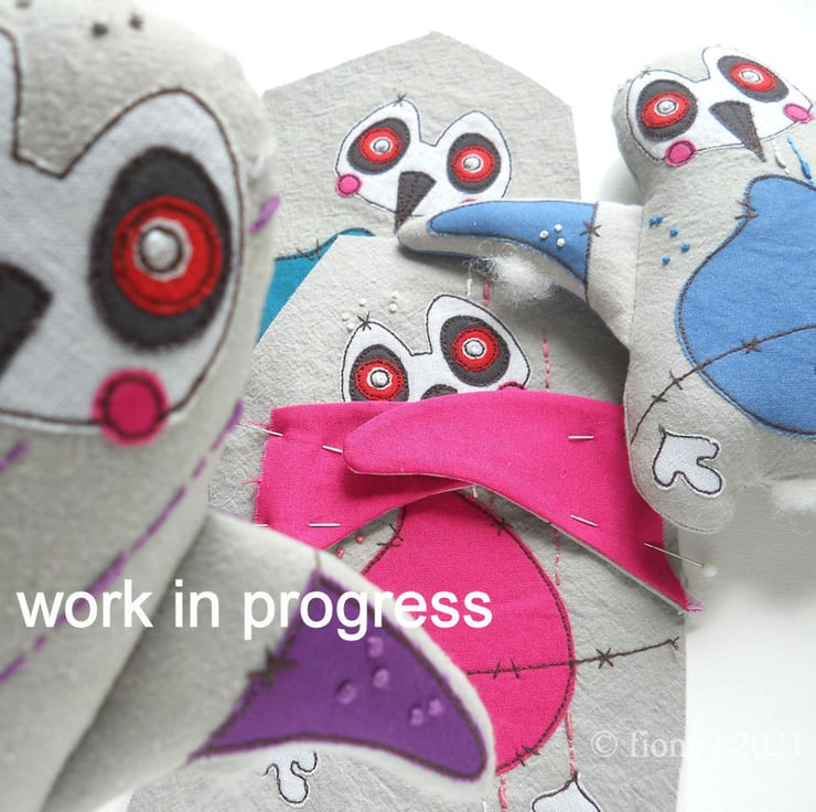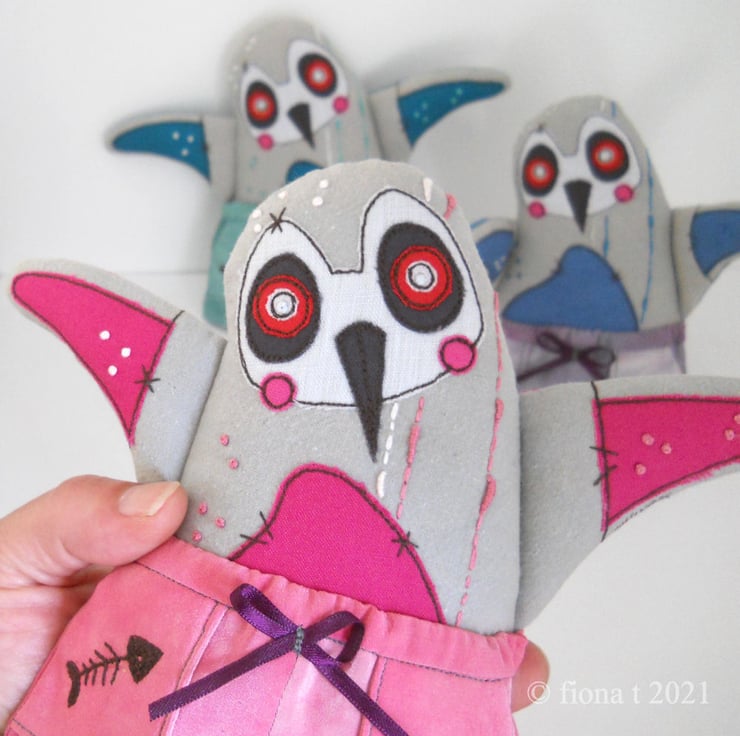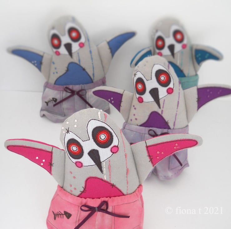 the penguins themselves have been made entirely on a domestic sewing machine, everything is cut, stitched & drawn freehand by me.