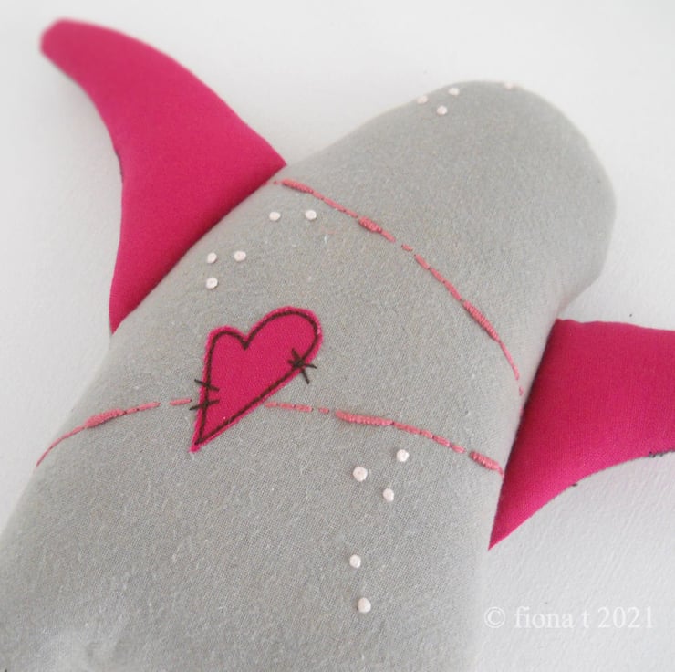 cotton fabrics are appliqued, and the details drawn on with free machine embroidery.