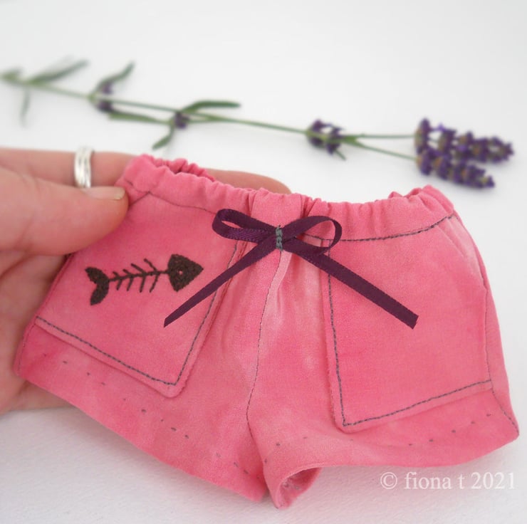 this limited edition sleepy sloth wears bespoke hand tailored pink silk pyjamas. the fish skeleton embroidered pocket is fully lined for carrying important snacks & tissues. obviously.