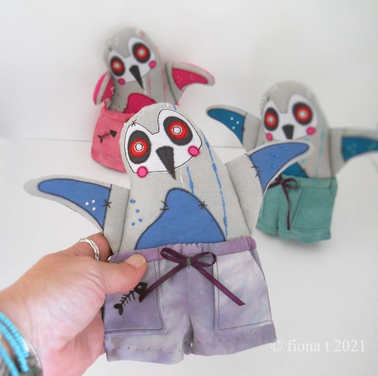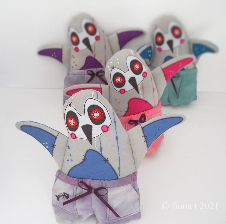 the penguins themselves have been made entirely on a domestic sewing machine, everything is cut, stitched & drawn freehand by me.