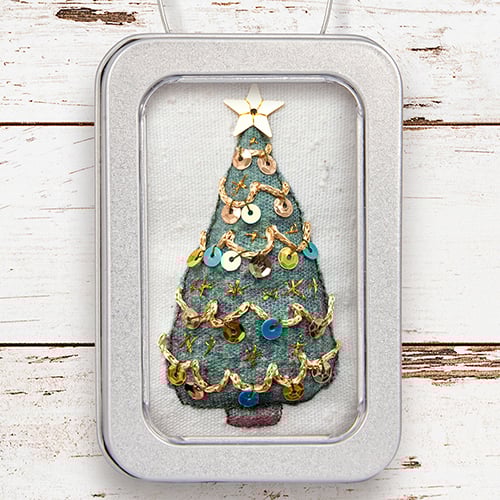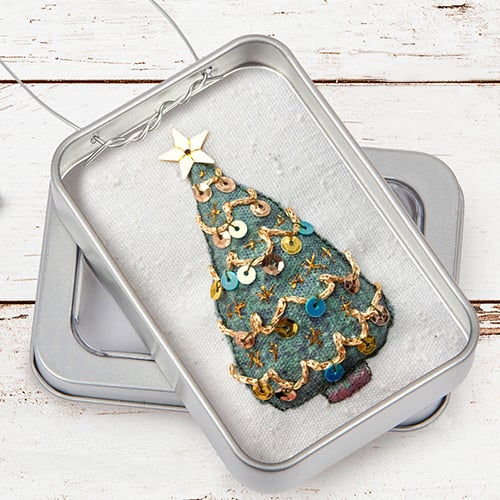 Hand-embellished print on fabric - stitched with gold thread and sequins.