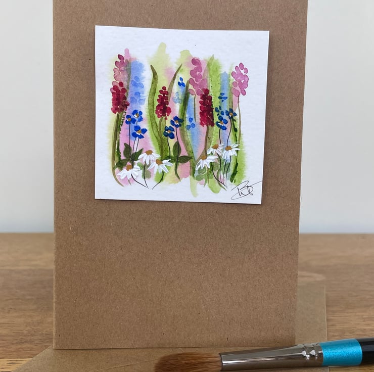 Hand painted watercolour and ink greetings card, left blank for any occasion. A one of a kind mini artwork.