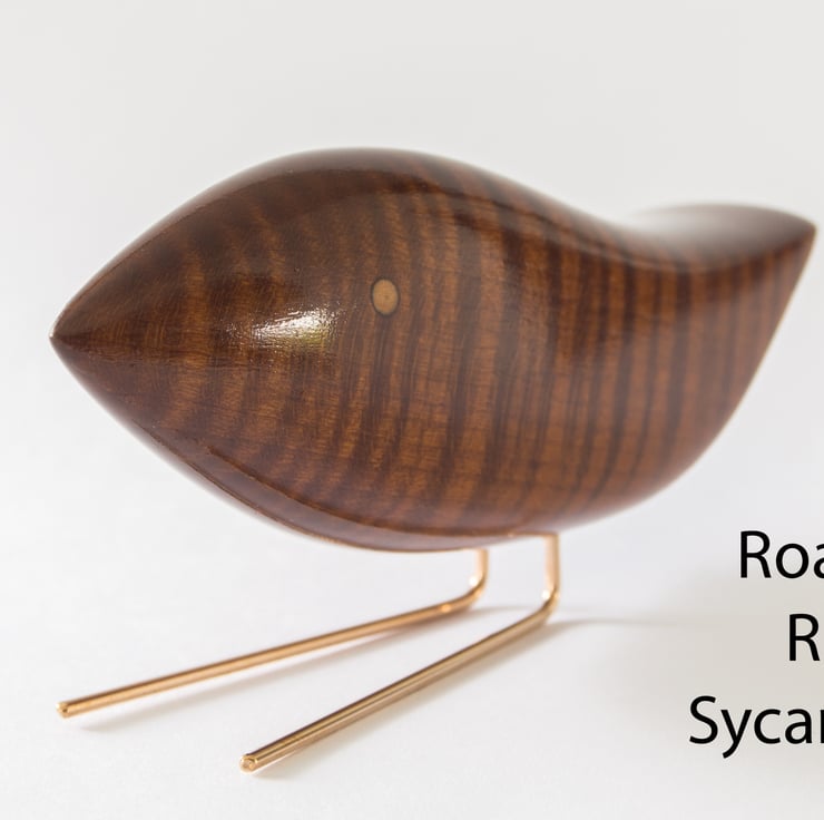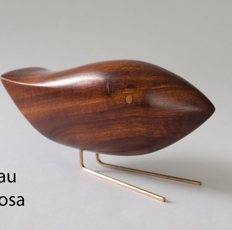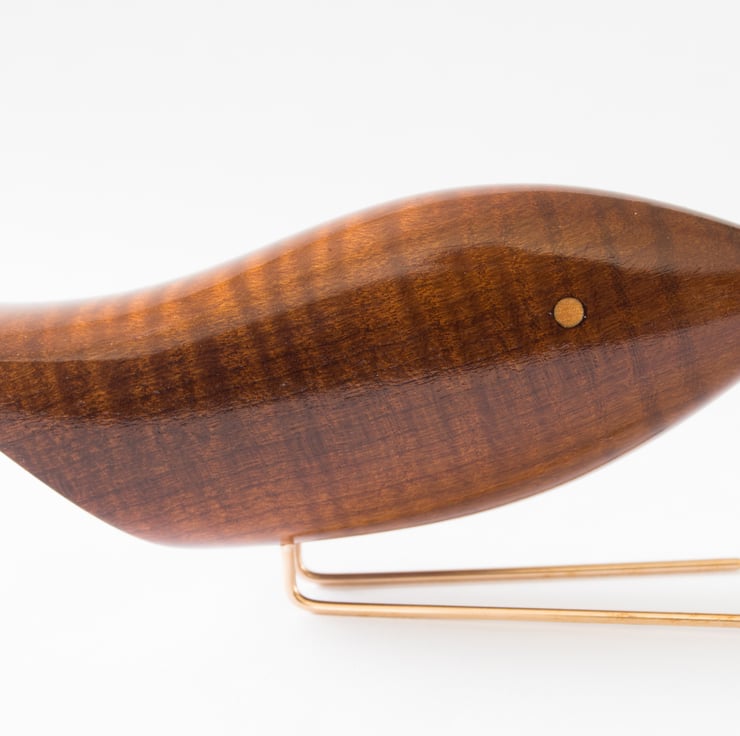 Inspired by 1950s originals, particularly those made by the Danish industrial designer Jacob Hermann, these are deluxe versions of my little carved birds, using highly figured or exotic musical instrument grade timbers.