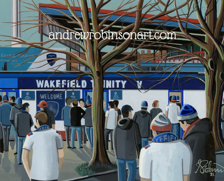 Titled ‘Dreadnought Fort’ this is a unique Wakefield Trinity print direct from myself the artist. My artworks are a celebration of the match day experience and of stadium architecture.