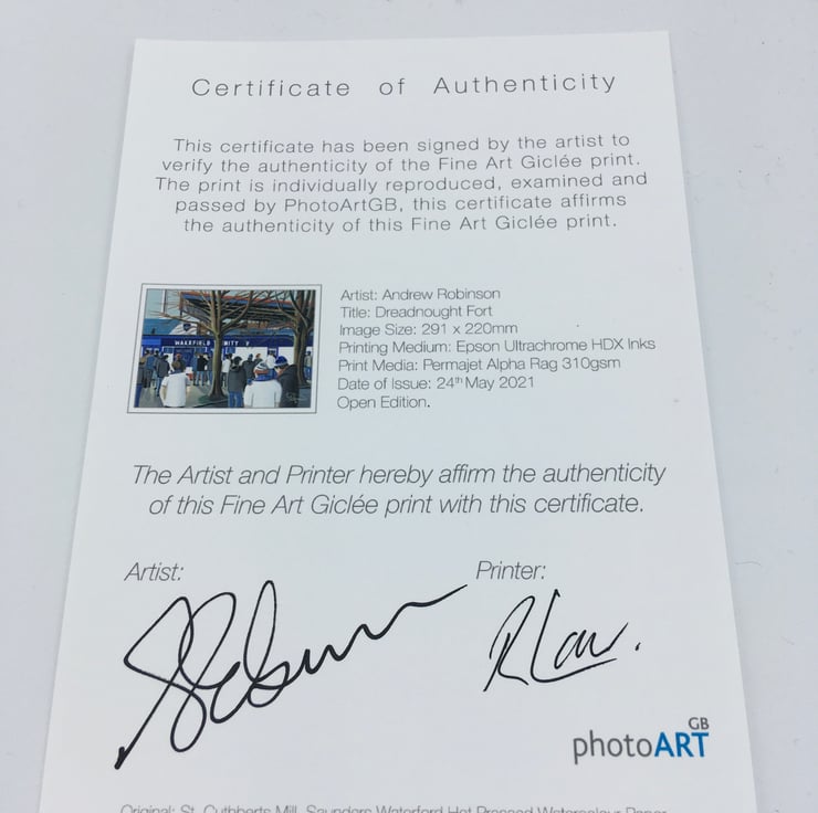 Titled ‘Dreadnought Fort’ this is a unique Wakefield Trinity print direct from myself the artist. My artworks are a celebration of the match day experience and of stadium architecture.