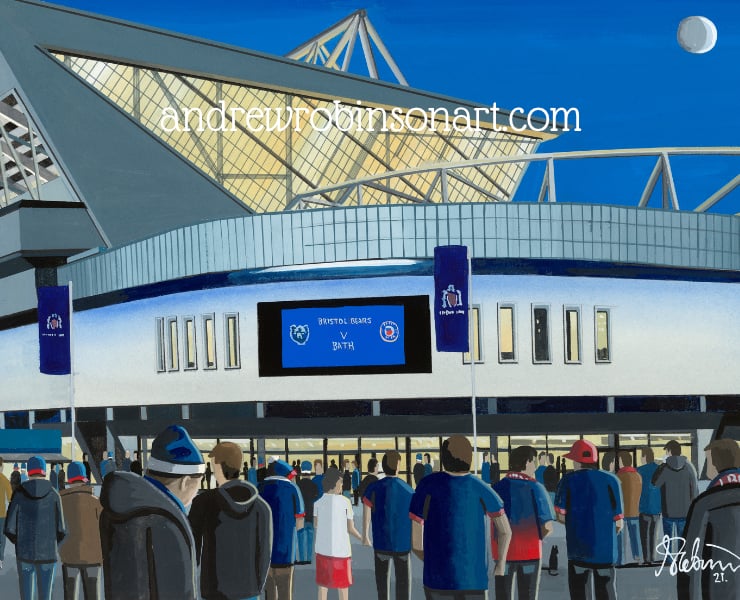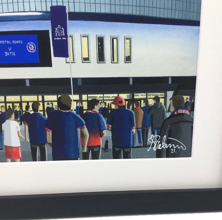 Titled ‘Its a Date at Ashton Gate’ this is a unique Bristol Bears print direct from myself the artist. My artworks are a celebration of the match day experience and of stadium architecture.