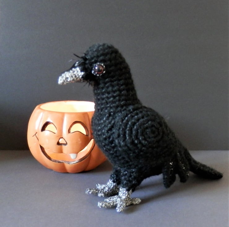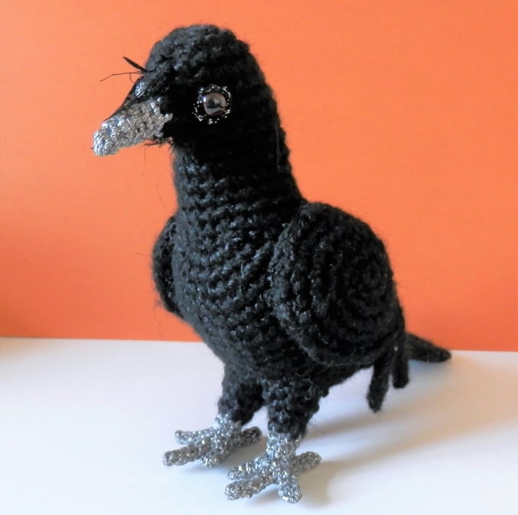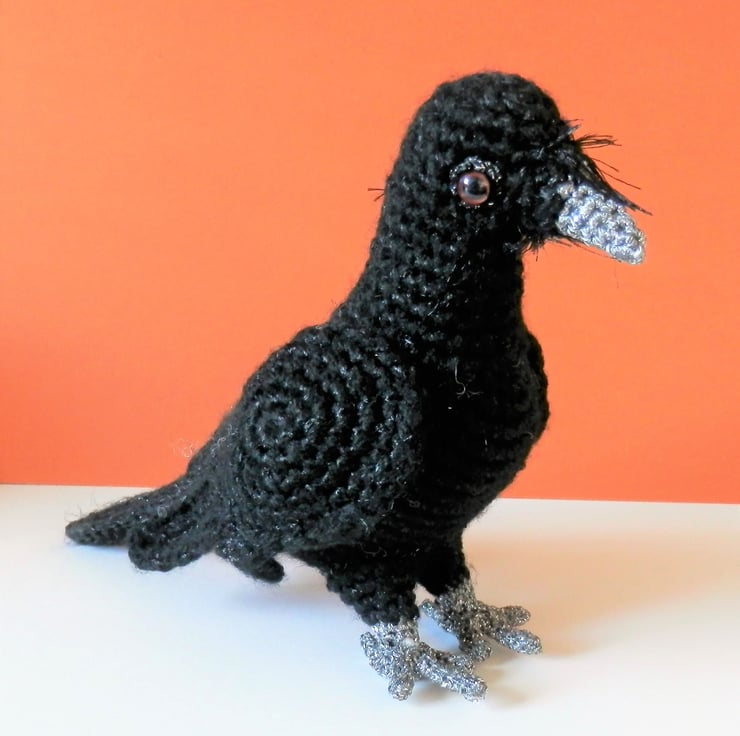 This listing is a crochet pattern in English UK terminology to make a crow about 5.5inches tall.