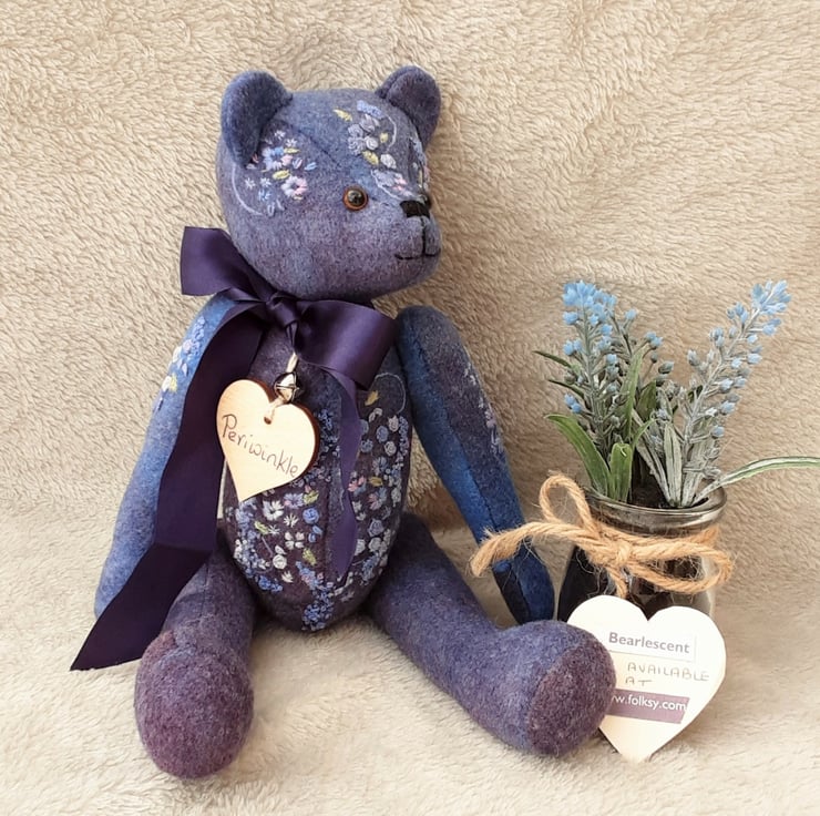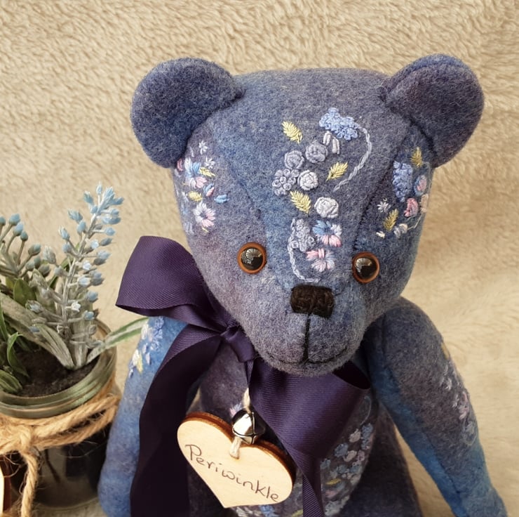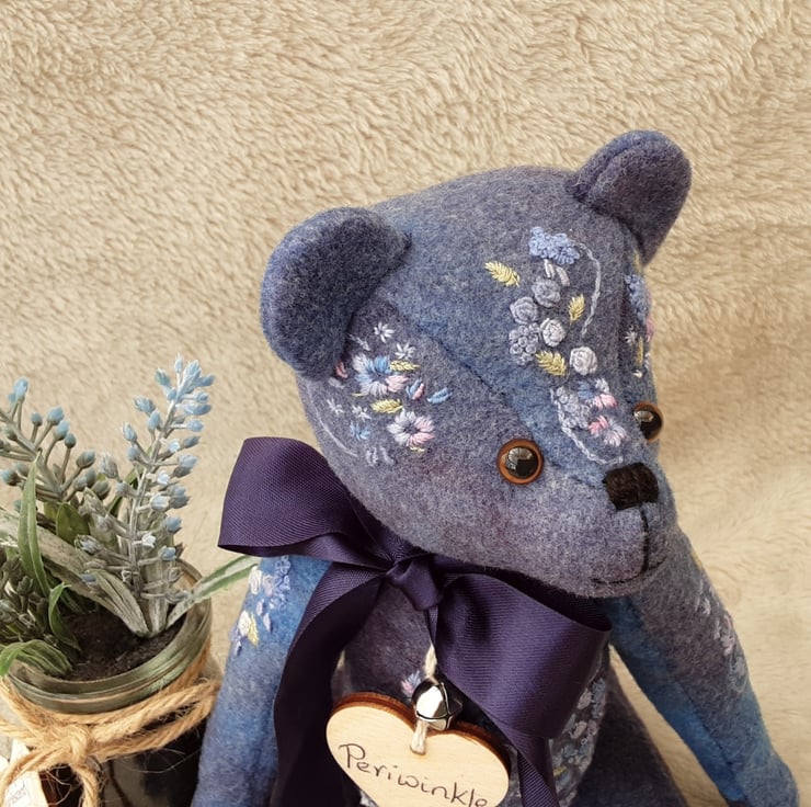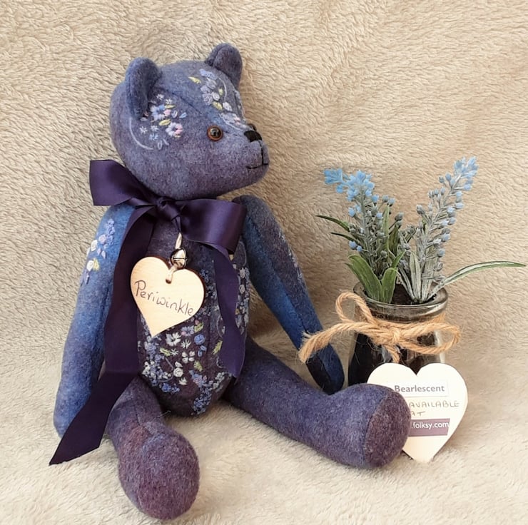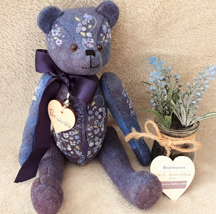 Periwinkle is a beautiful unique bear, designed as a keepsake gift to be enjoyed for many years to come. She would make a lovely gift for someone special or a unique addition for the teddy bear collector. My bears are designed as adult collectables only and are not suitable for children under 14.