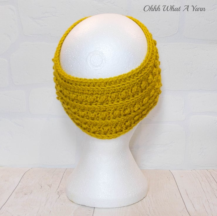 This cosy gold one size ladies ear warmer/headband has been crocheted using a gorgeous 100% acrylic aran weight yarn.