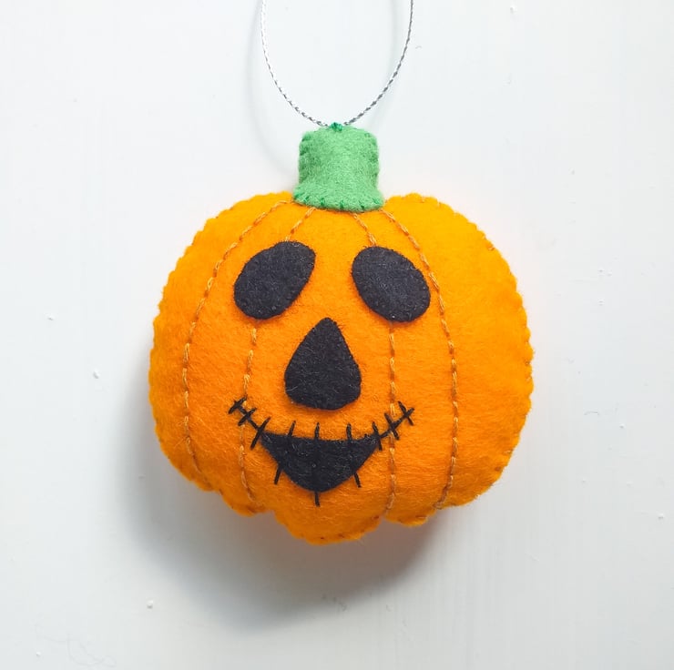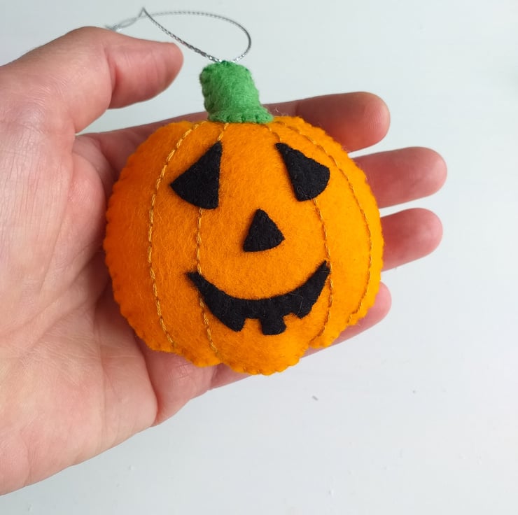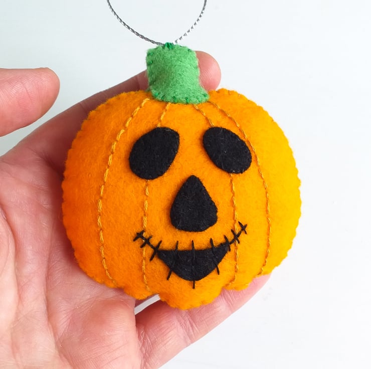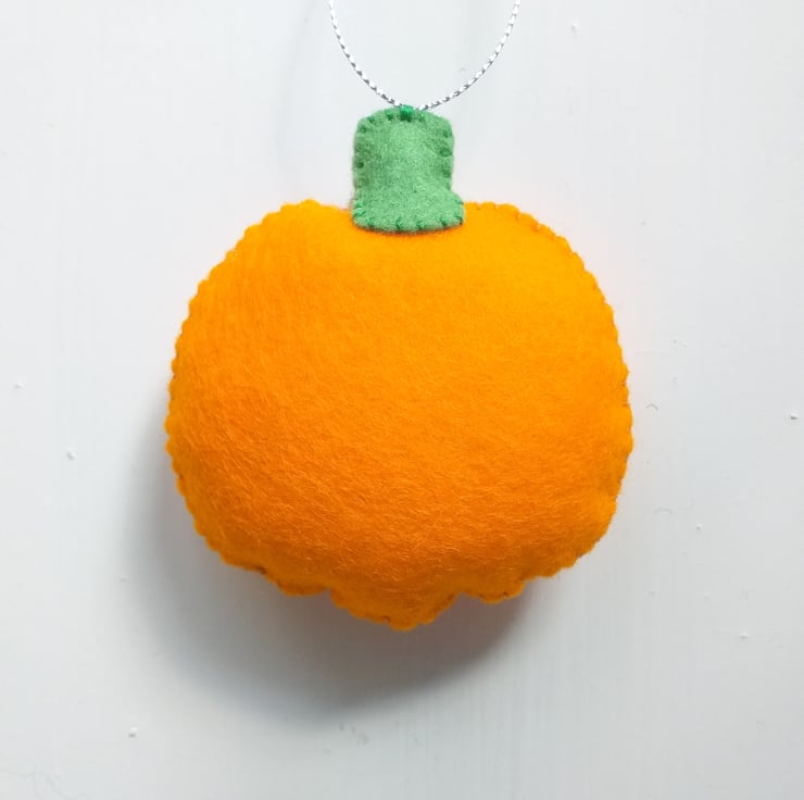 These cute orange pumpkins are made with wool felt and are padded to give them a 3D appearance.