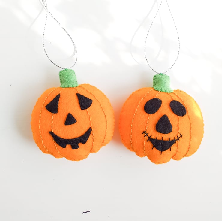 This listing is for two felt Halloween pumpkins to spooky up your home this Halloween