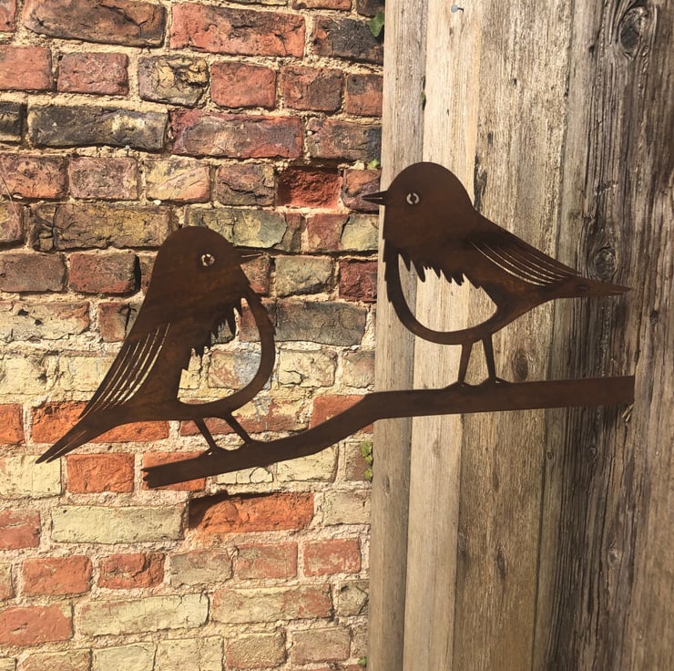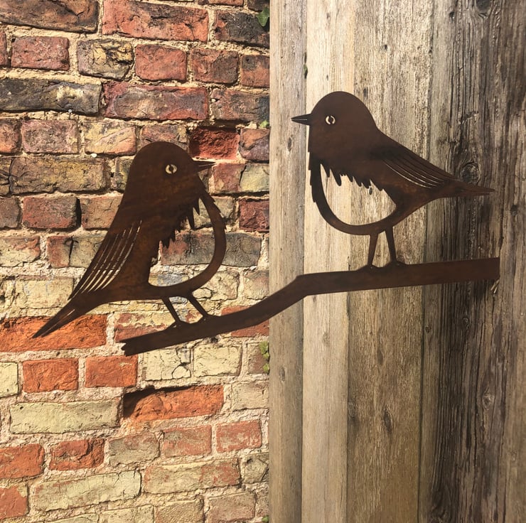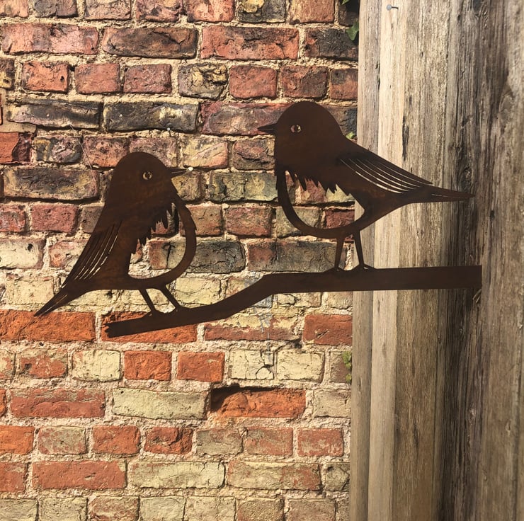 Very popular rusty metal sign in the shape of a birds on a branch.
