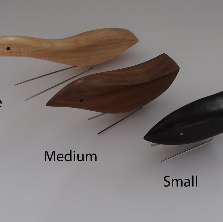 Inspired by 1950s originals, particularly those made by the Danish industrial designer Jacob Hermann, these little stylised birds are currently made to order in four sizes and a choice of six hardwoods - cherry, elm, walnut, mahogany, iroko and sycamore (European maple).